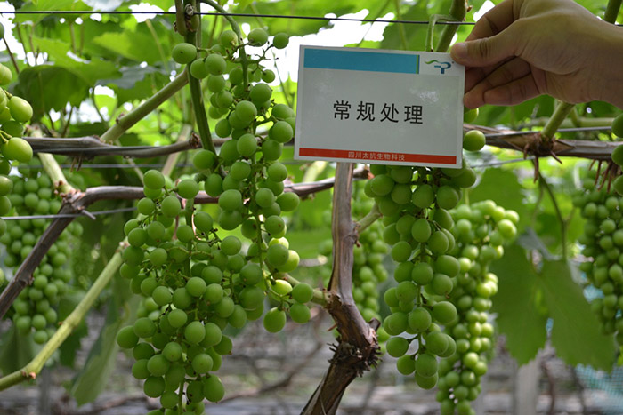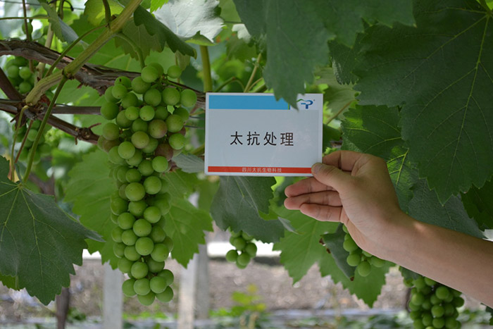 莊園牧歌陳總對太抗系列產(chǎn)品的效果給予了充分肯定:第一、與進口化學(xué)殺菌劑效果相當(dāng);第二、性價比高,藥效持效期長;第三、植株長勢健壯、葉片濃綠厚實;第四、促進葡萄生長,提前著色,可以使葡萄提早上市。陳總說“我們國人自己生產(chǎn)的太抗生物農(nóng)藥既然有這么好的效果,性價比高,又安全,我肯定支持國產(chǎn)噻”,這是對我們太抗最大的肯定與鼓舞!